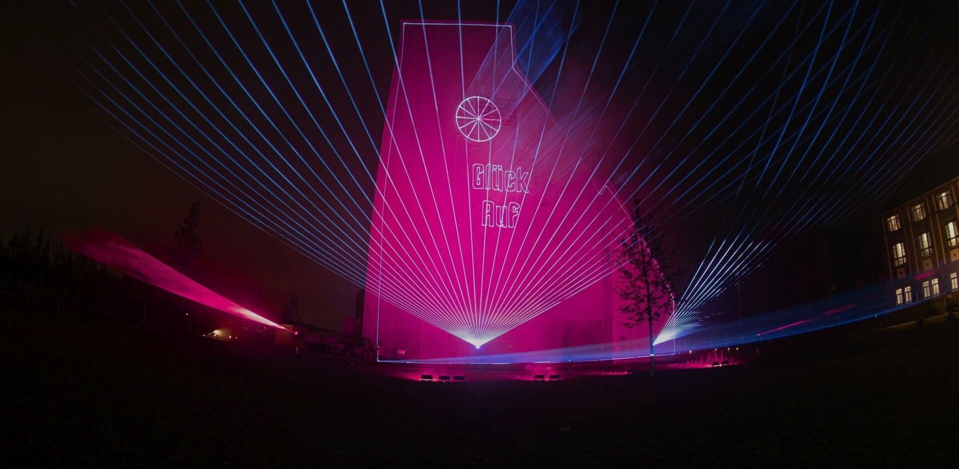 Das Event mit geladenen Gästen wurde auf dem eigenen Firmengelände durchgeführt. Als Highlight wurde eine Lasershow mit der gesamten Unternehmensgeschichte ausgewählt.